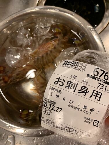 松葉ガニを締めて以来、時おり夢でうなされるどんぐり太郎です。 ツルヤと申しますのは鮮魚がわりと充実したスーパーでありまして。 ふだん利用する御代田店におきましても、時おりこんなシロモノが。 活海老でありますよ。 たまにごそごそ動いておりまして…